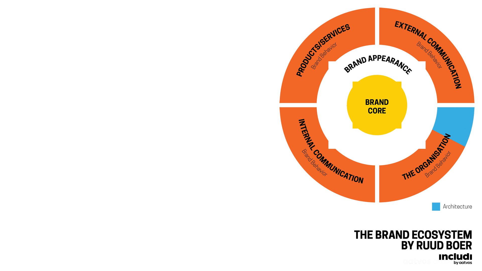 Architecture used to feel at home at the center of the universe, but now has to find its place in the brand ecosystem. Rather than starting off on their own, architects have a newfound responsibility towards brands. Brand behavior revolves around the organization, including things such as dress code, interior design, and its headquarters. Recognizing that the organization itself is also part of the brand, architects have the complicated task of translating how an organization works into physical means. A brand has the power to nudge architects in a certain direction, if they are willing to listen. Architecture and interior design that respect and reflect the innermost circle of a brand will add two extremely valuable aspect to a brand: coherence and consistency.
