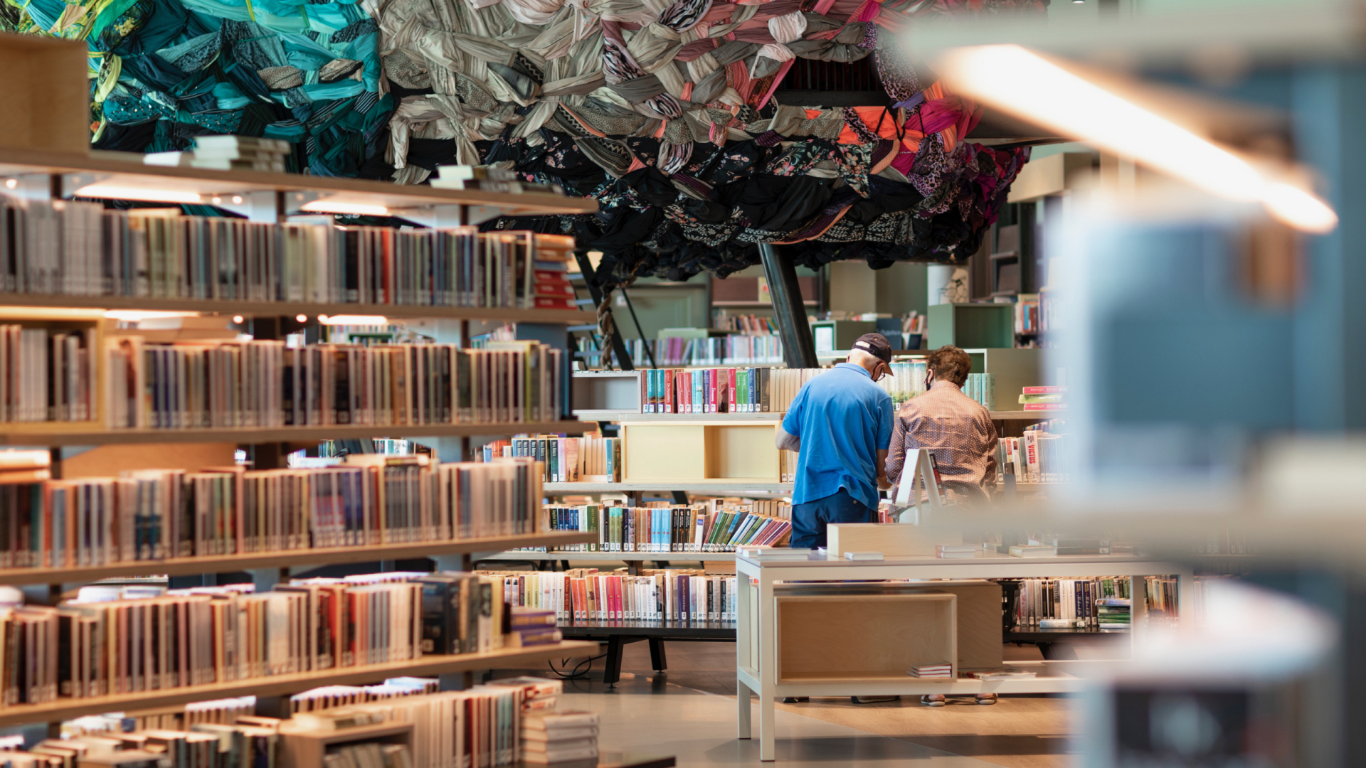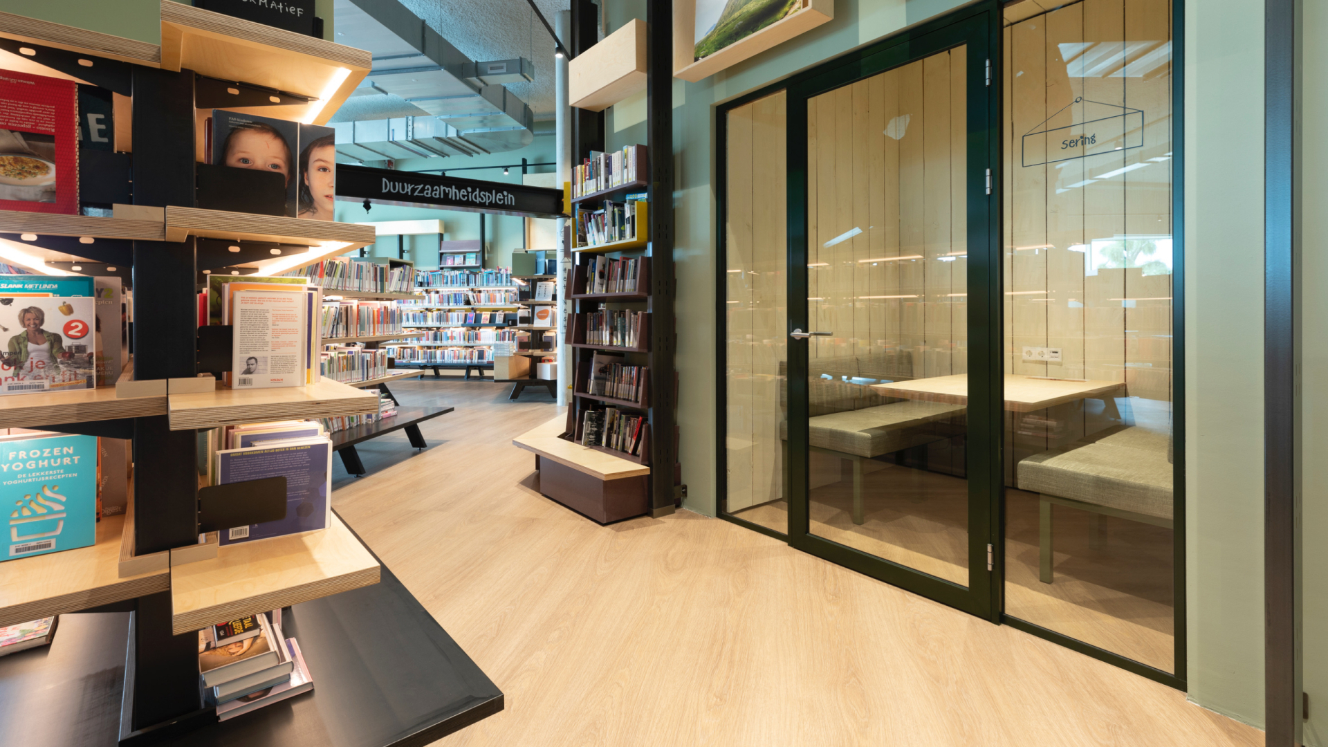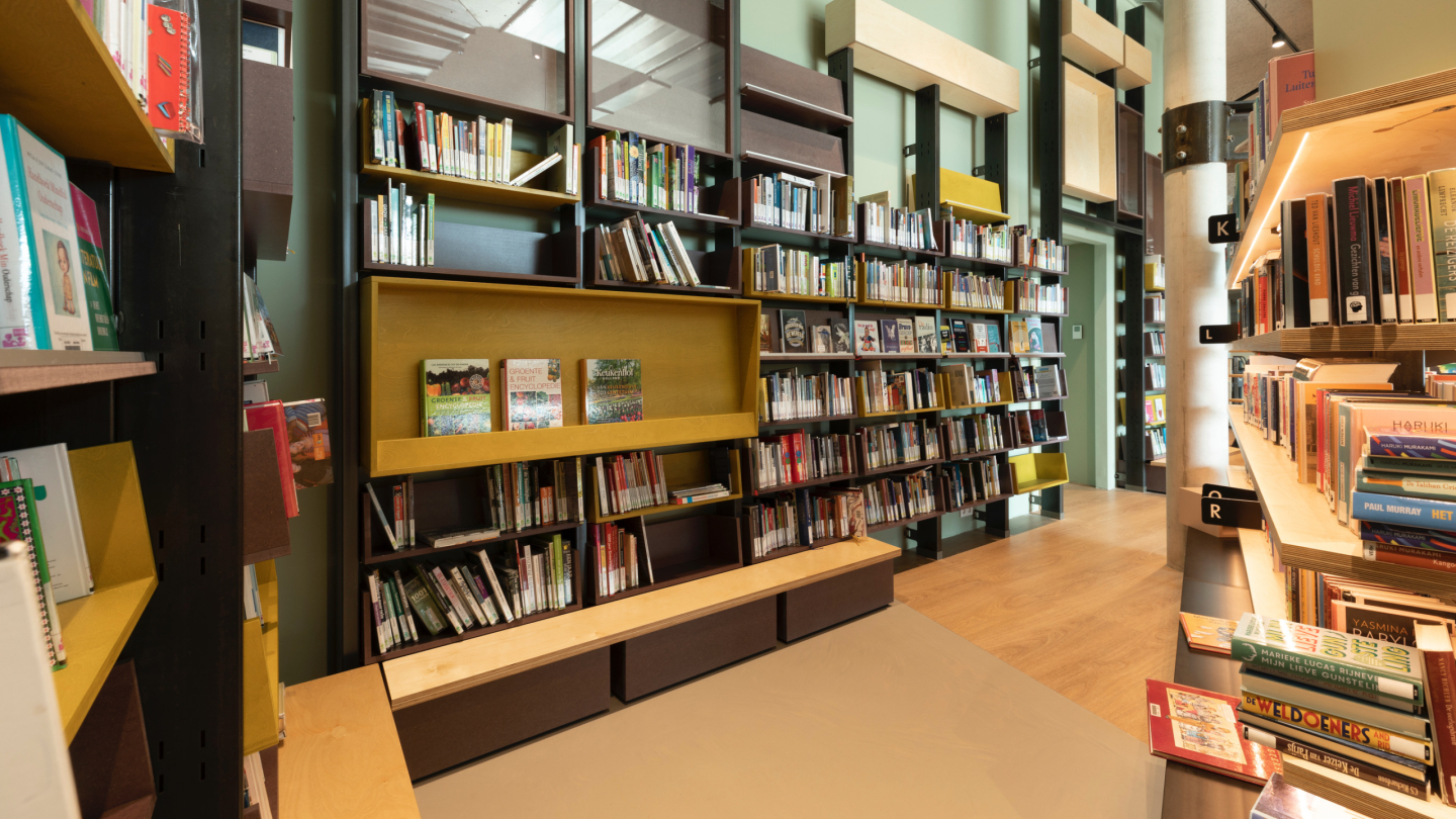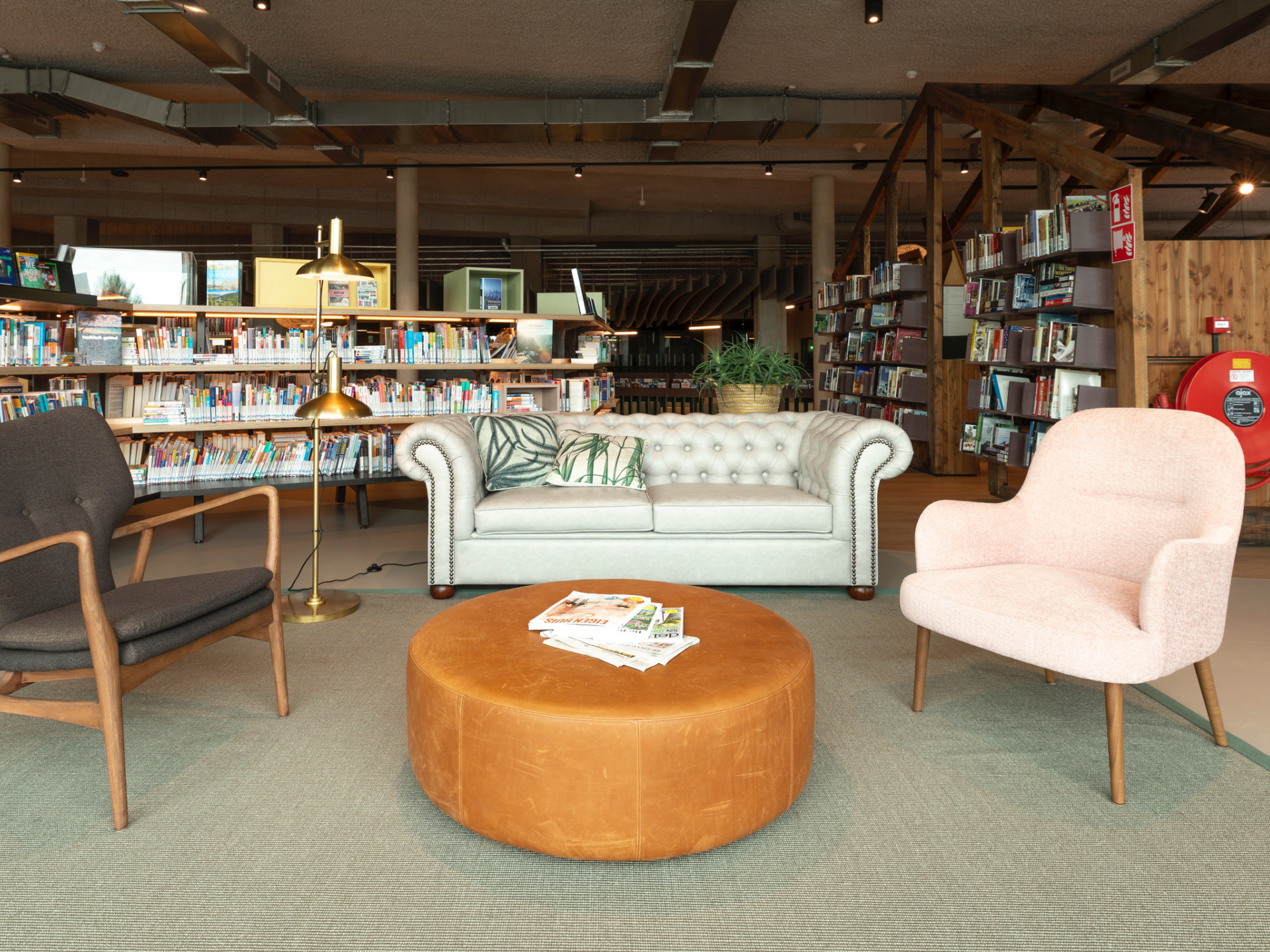 De bibliotheek moedigt spontane ontmoetingen en persoonlijke ontwikkeling aan. Een bewust imperfecte lay-out creëert een toegankelijk, informeel interieur dat persoonlijk aanvoelt. Om het groene karakter van zowel de stad als het duurzame gebouw te versterken, zijn er veel groene accenten en natuurlijke materialen gebruikt in het interieur om een parkachtig karakter te creëren. Een flinke portie natuurlijk licht nodigt mensen uit om dit bos van verwondering te verkennen. De kasten zien eruit als takken die willekeurig in de ruimte liggen, de trap is bedekt met een mosgroen tapijt. Een wand met houten lambrisering herbergt bibliotheekfaciliteiten en open zithoeken die bezoekers verwelkomen om te lezen, elkaar te ontmoeten of een gesprek aan te gaan. Al deze unieke elementen maken van de nieuwe bibliotheek een aangename derde plek met een versterkte sociale rol.