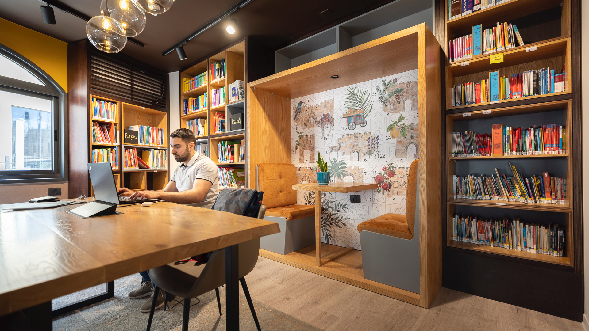 Gemeenschapsruimtes zijn nog steeds zeldzaam in Palestijnse gebieden, maar zeer gewild.In 2019 was het voor het Goethe Institut en Institut Français tijd om zich verder te ontwikkelen en de publiek ruimtes van hun gebouw opnieuw in te richten. Het doel: een uitnodigende derde plek creëren, in een sfeer die wordt gekenmerkt door lokale verbondenheid, saamhorigheid, warmte en veiligheid.