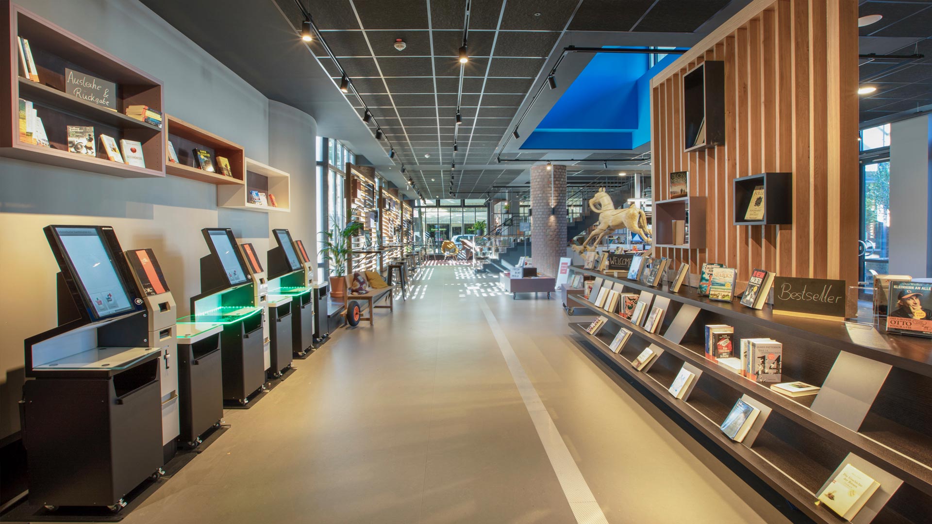 Dat de bibliotheek openstaat voor andere talen, verschillende leeftijden en culturen wordt weerspiegeld in het interieur. Het omvat een meertalige mediaselectie, meubilair dat geschikt is voor senioren, een speelplek voor kinderen en een hele verdieping waar Generatie Z zich welkom genoeg voelt om zich deze afdeling eigen te maken. Kalk, de wijk met de meeste migranten in Keulen, heeft te maken met ongelijkheid die zijn oorsprong vindt in ongelijke kansen. Vandaag de dag is het de thuisbasis van een van de meest innovatieve bibliotheken van Duitsland, met een uniek digitecture project van de Bremer kunstenaarsgroep Urbanscreen.
