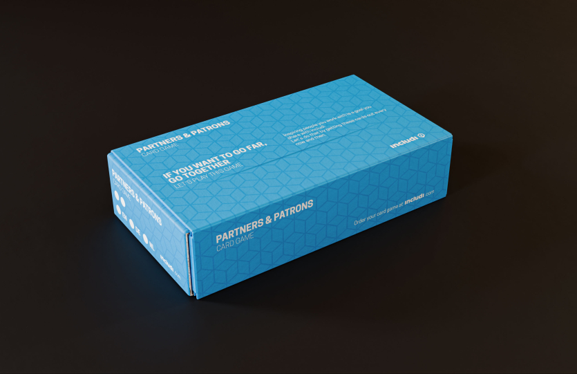 Boxes of card games at the includi webshop. Inspiring people to create a place where people feel welcome.
