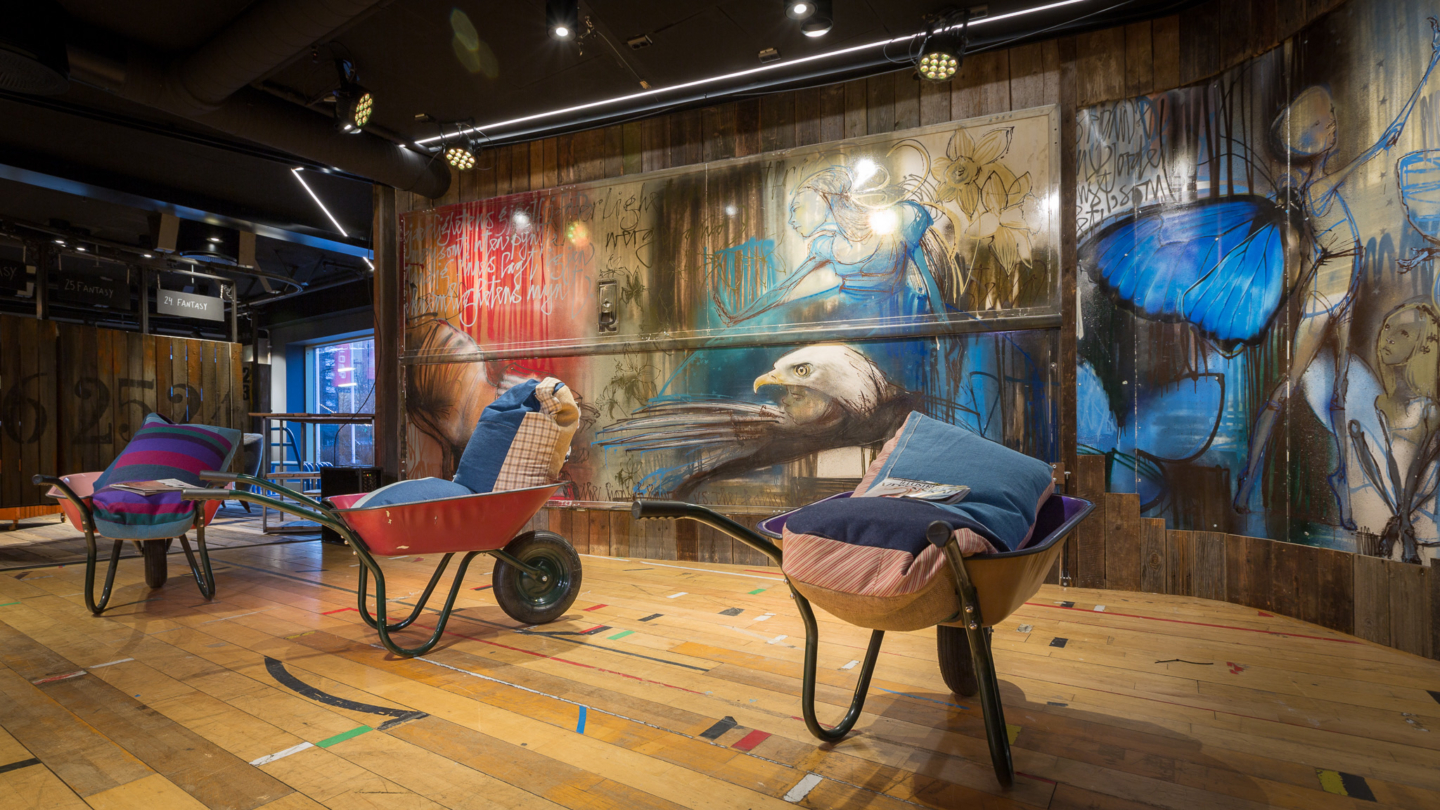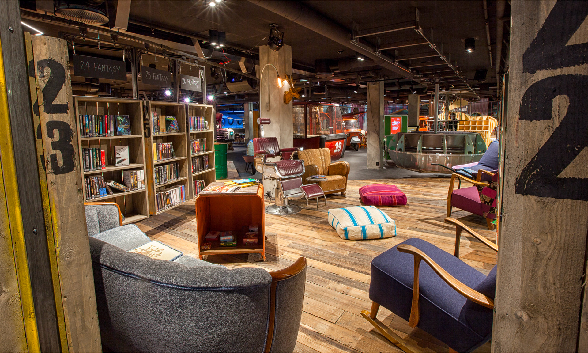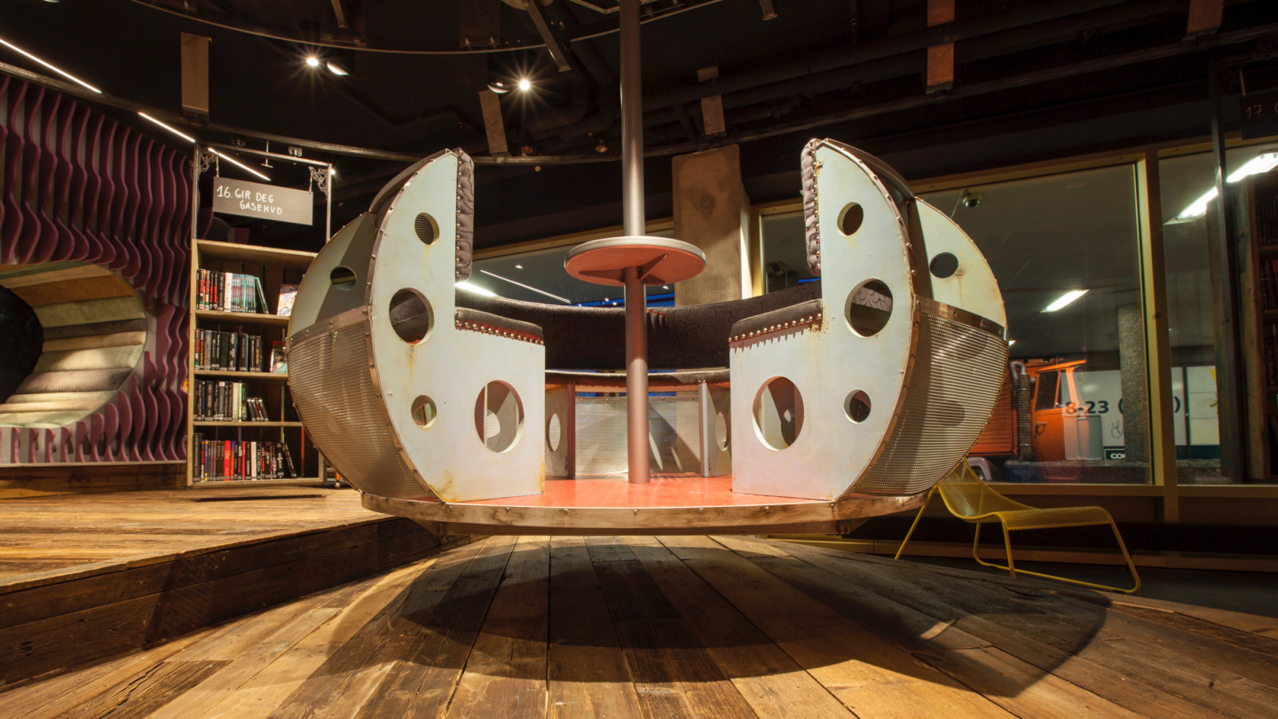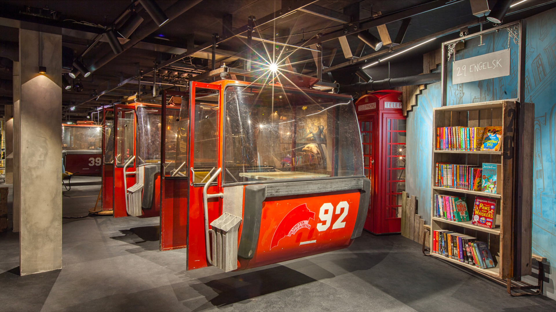 The library design multiplied its creativity thanks to hiring a crew of skilled set-builders to create a stunning environment. Unexpected props and striking visuals made this youth hub come alive. The space is filled with a sense of weightlessness and ease due to the many floating elements, including bookshelves. This project was a truly unique endeavor that allowed us to cater to an extremely important target audience. The result is probably the most fascinating library you will find. Anywhere. What makes this project extra valuable is that the library has a positive impact on the neighborhood. Deichman’s expansion included the evening-accessible Deichman Tøyen, hosting numerous weekly events.