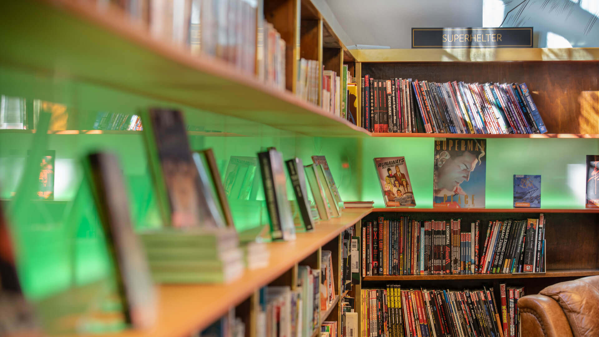 The renewed library should foster active community participation by functioning as a toolbox, both in a practical and a metaphorical sense. The library not only allows people to borrow books and tools, but it will also host workshops, repair parties, exchange market days, provide people with seeds to plant at home and advise them on how to grow their own food. Interior-wise, concrete structural pillars were decorated to look like solid steel structures to add an industrial twist to the original art-deco theme of the interior. Freestanding bookshelves were removed and the traditional bookracks on the wall were re-used. The lighting was also rethought – from plain ambient lighting to intriguing illuminations and an illuminated shelf.