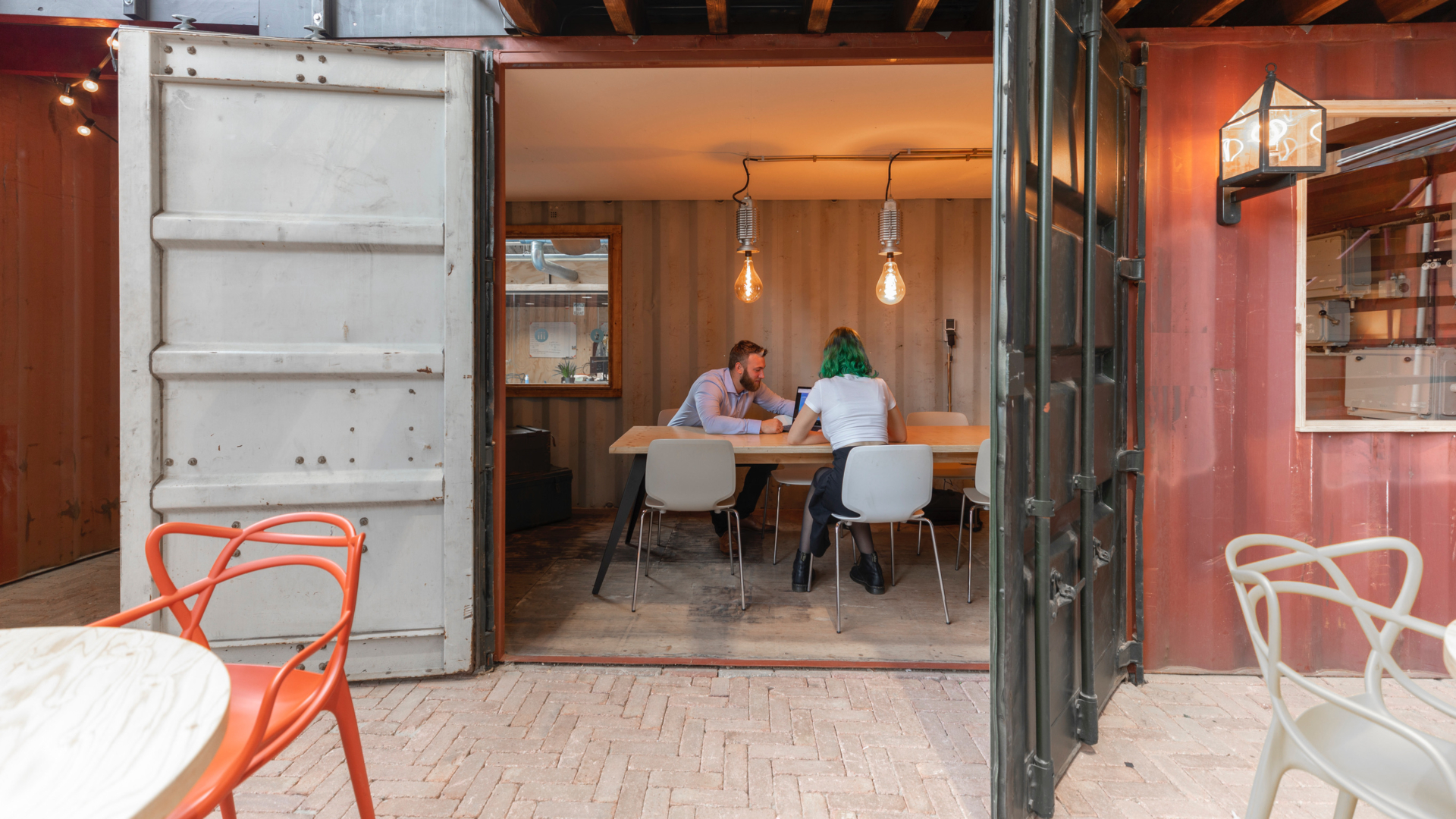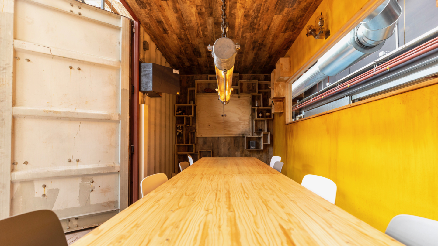 Health Hub features diverse spaces including offices, seminar rooms, a biomedical lab, a makerspace, and catering facilities. The bespoke interior design emphasizes the size, interaction, and unique principles of each function. Notably, the central area, designed as a vibrant “small village,” facilitates various activities. Composed of ocean freight containers, this space offers flexible options for work, meetings, and dining both indoors and outdoors, creating an intimate atmosphere without overshadowing the grandeur of the industrial hall.