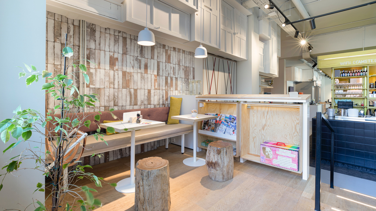 OBA branches have unique OBA DNA and a distinct character. CC Amstel, short for Cultural Clubhouse Amstel, combines the library, theater, makerspace, studio and café-restaurant. Design for Programmability was crucial in attracting and engaging a diverse range of local users. Our workshop with organizations, team members, and stakeholders led to a vision and plan to integrate Ostade Theater (now CC Amstel) with OBA. The outcome of the session was translated into a fresh design for a modern, multifunctional third place.
