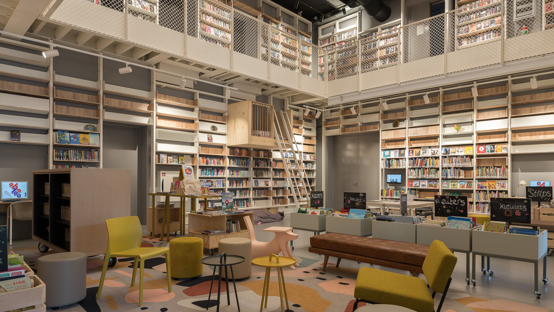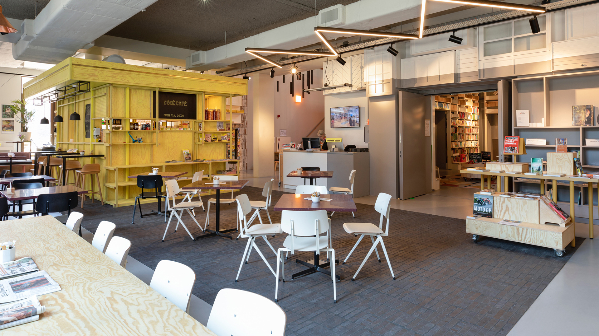 The new CC Amstel branch of OBA (Amsterdam Public Library) is a hidden gem found in Amsterdam’s lively neighborhood ‘De Pijp’. Sharing doors with a theater, this unique establishment blends an urban mix of functions, making it an ideal cultural community hangout—a true third place. The emphasis on Design for Programmability has been instrumental in shaping its distinctive character.