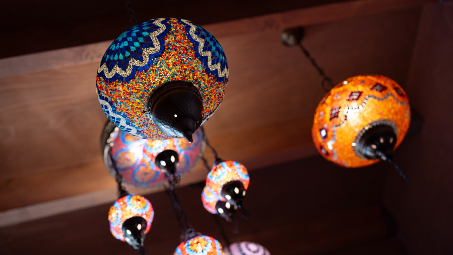 • The walls of the cocoons are covered with different printed pet felt in various colors, while the seating areas have cozy upholstery.