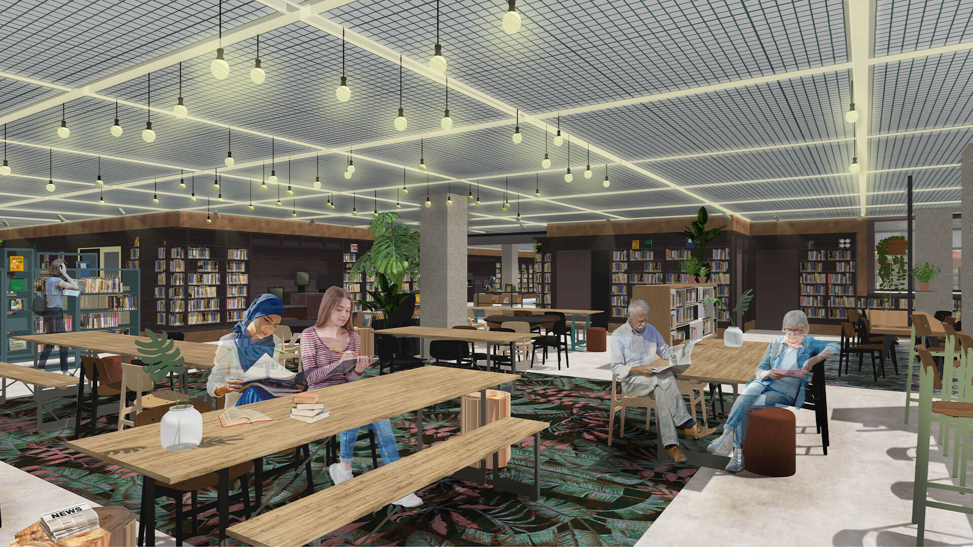 "The redesign visibly transforms the library into a social meeting place that invites people to linger."