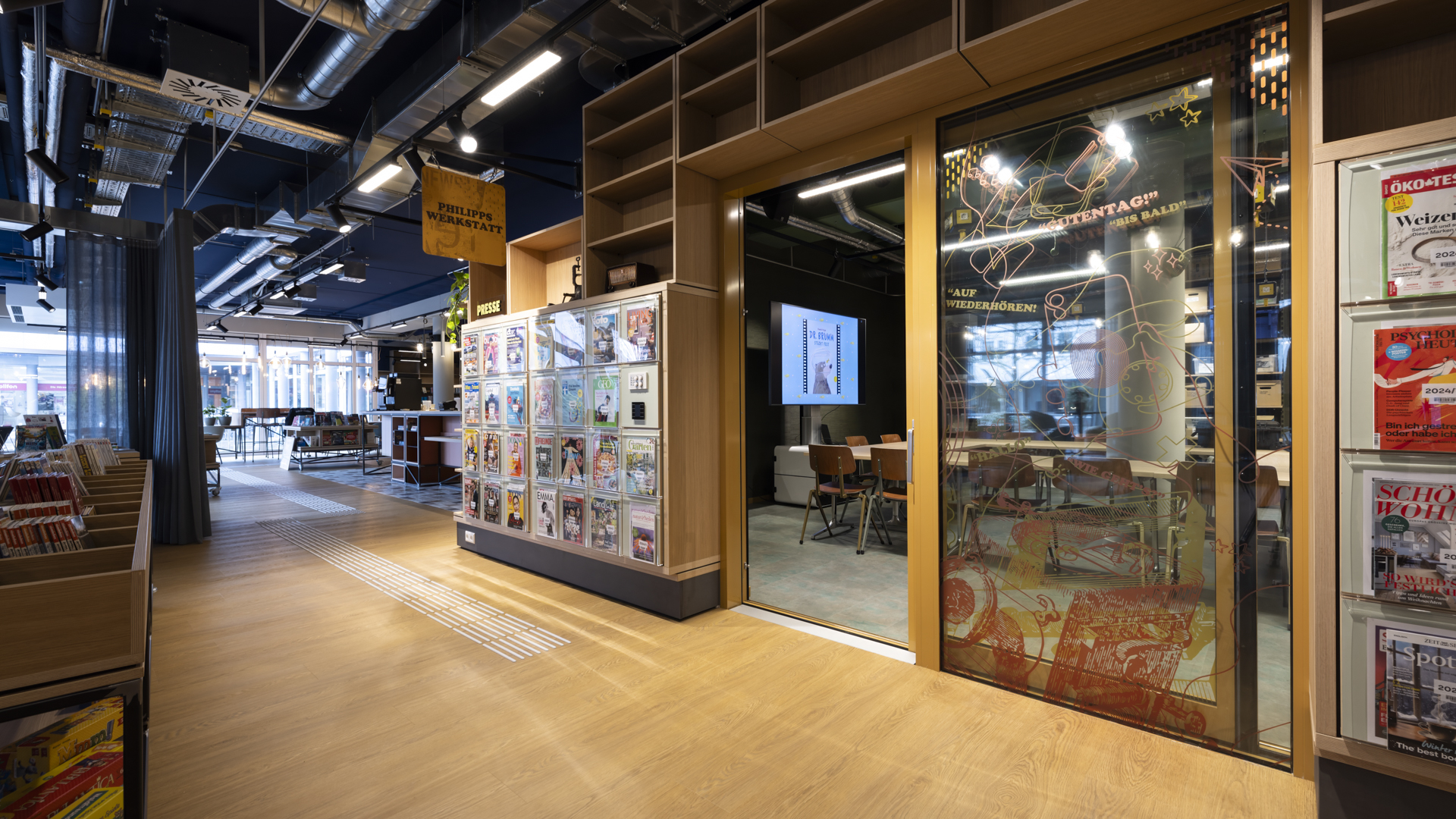 A standout feature is the freestanding, comfortable cocoons lined with custom-designed backgrounds made especially for this library. Friedrichsdorf wanted to create an inspiring space for everyone—a goal that has been fully achieved. Inclusive features, such as unisex and family restrooms, tactile floor guides, and wheelchair-accessible book drop-off points, make this library not only inviting but also accessible to truly everyone.