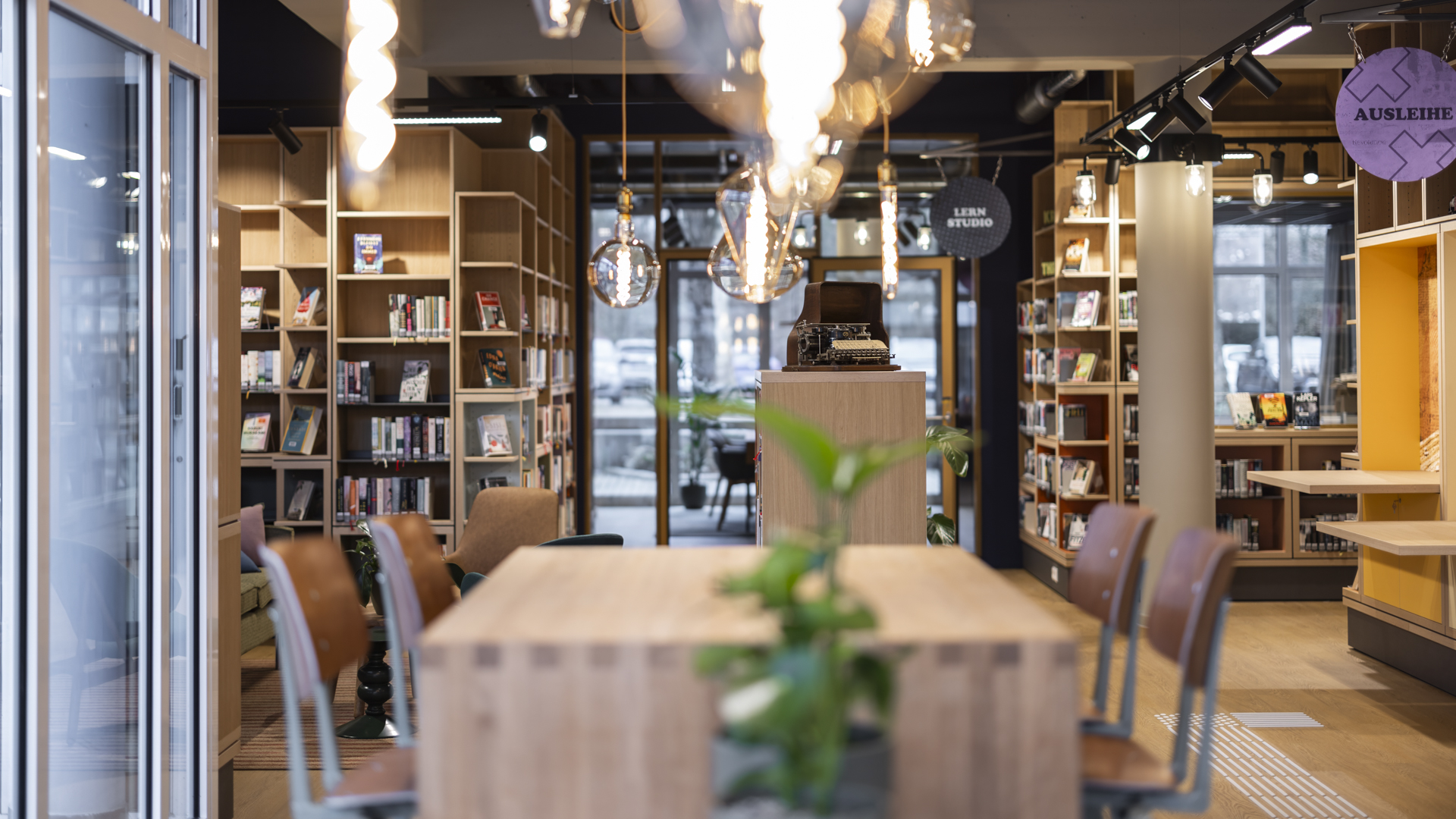 Social impact and civic engagement often go hand in hand. This project is even characterized by an extraordinary level of involvement from the citizens of Friedrichsdorf. At the outset, nearly 400 people participated in an extensive online survey to contribute their wishes and preferences to the planning process. The survey revealed a desire for both a cozy place for relaxation and education and an inspiring space for encounters and exchange. During the includi Design Workshop week with the library team, these wishes were incorporated into concrete architectural plans. On the one hand, quiet, introverted spaces for reading and learning. On the other, social zones for encounters and events. As construction progressed, citizens showed their commitment by donating over 40 personal items, now displayed as decorative elements in the library.