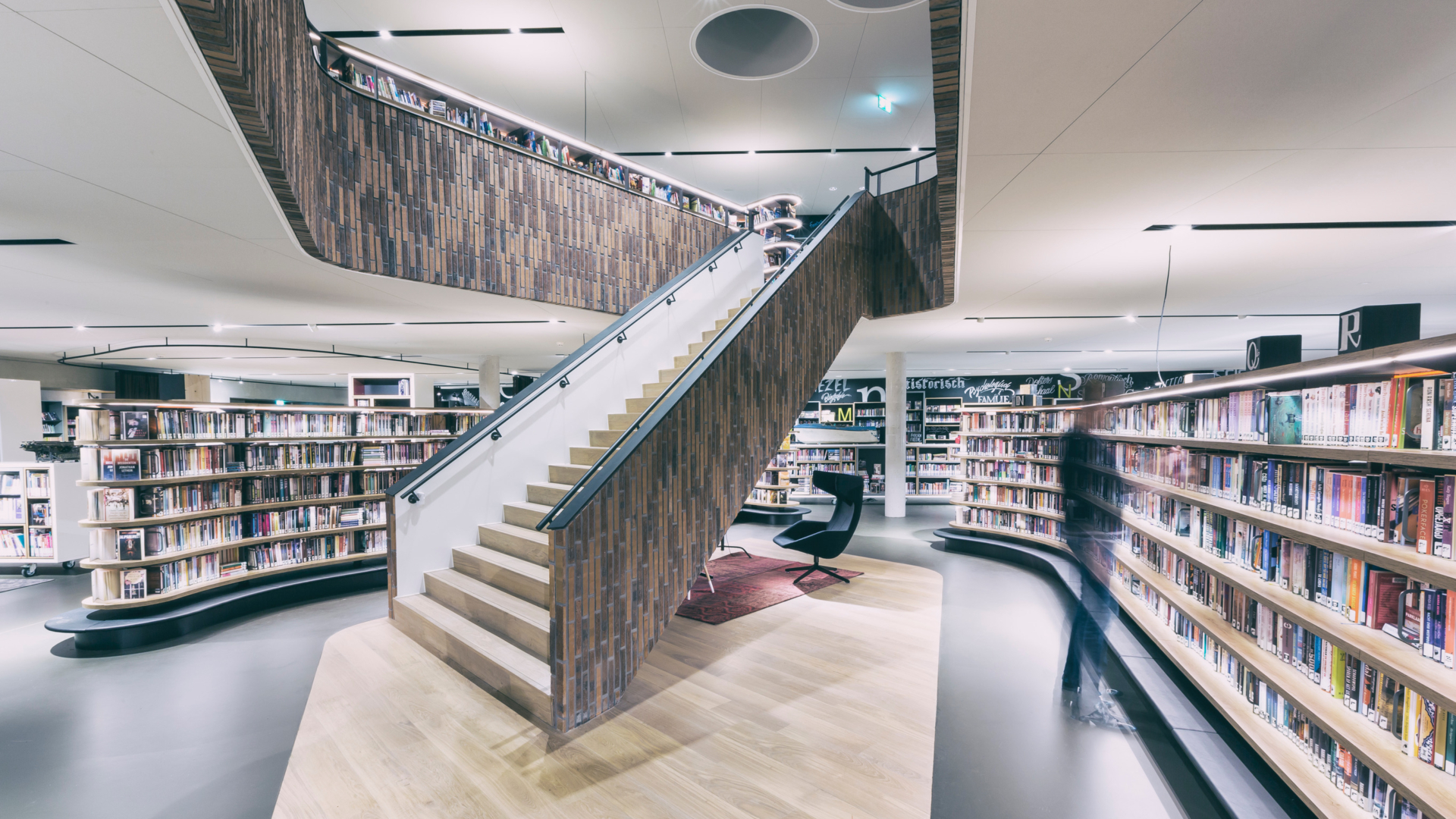 This library invited people to come together in groups, whether it was for reading or studying, time in classrooms, a reading café and many other possibilities were made available. A haven designed to embrace one and all.