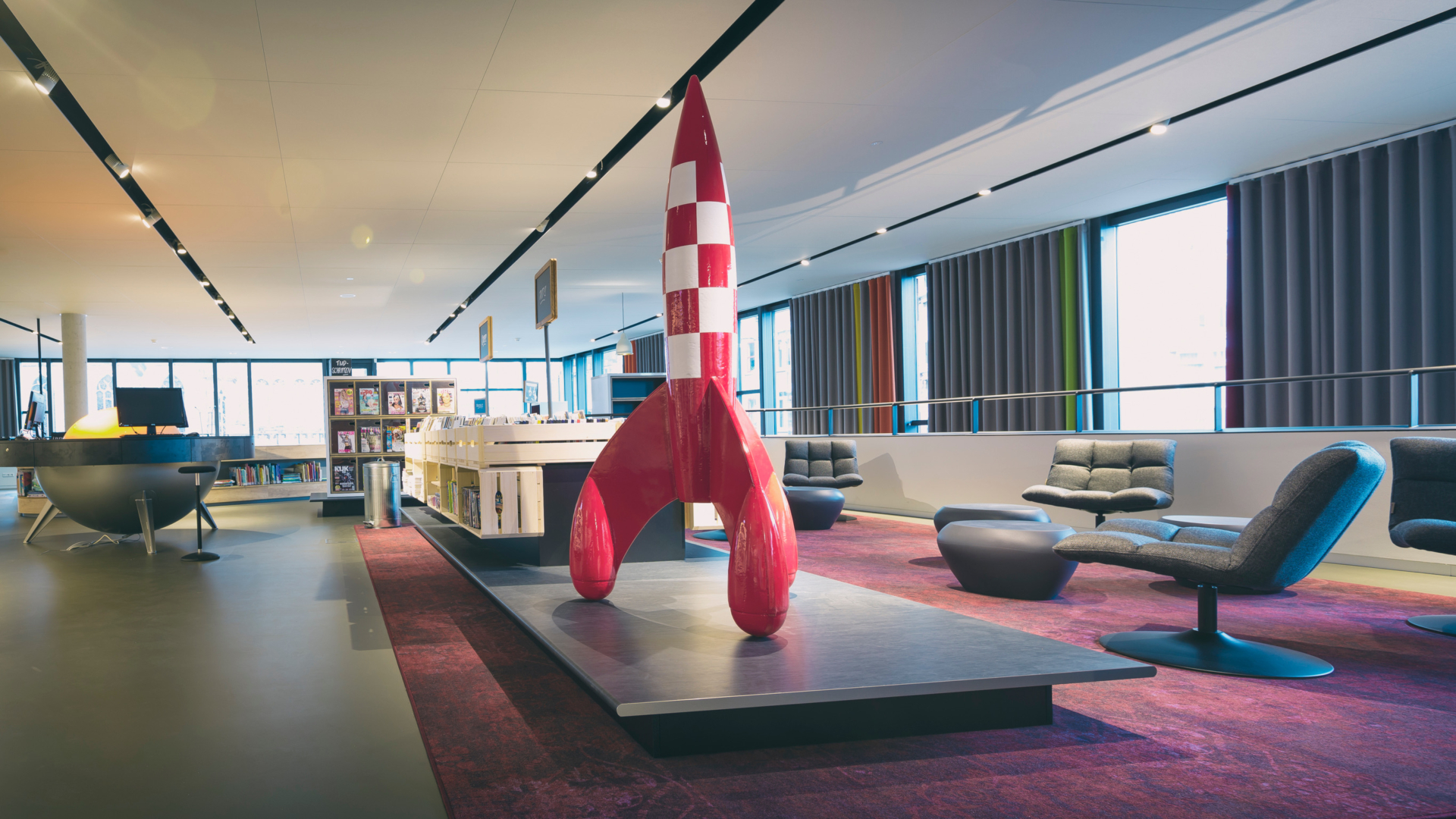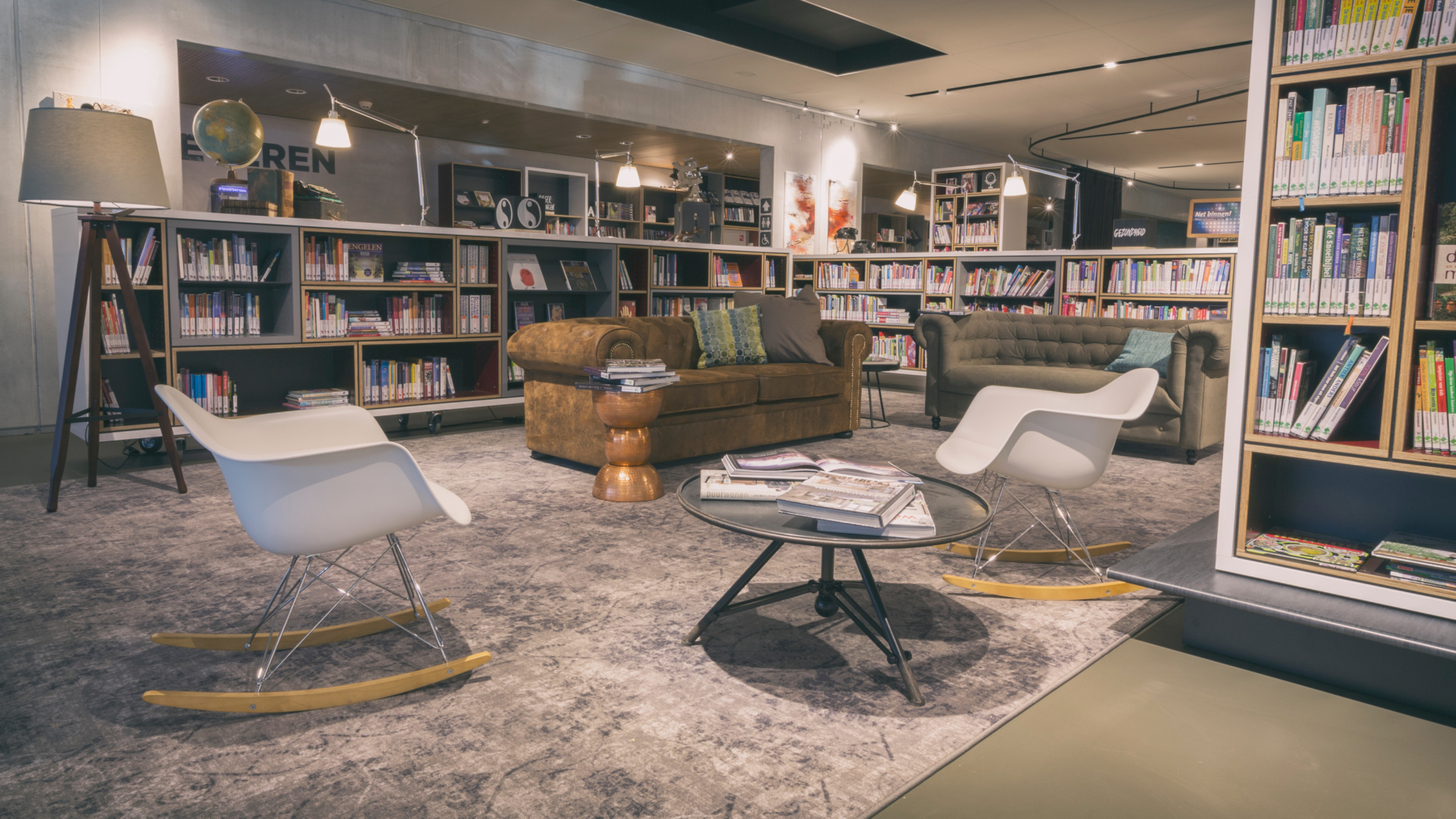 This competition showed us that most people want the same thing out of a third place: a home away from home. When we visited the client’s provisional library before entering the renovation, there was a previously unused room that the visitors had started to take over. They had brought over their own sofa’s, chairs, coffee and magazines: “We call it our living room,” the client explained. The anwer to our creative challenge was right in front of us. From there we knew our creative direction. Our client Oosterhout Library was fully on board with our vision and the design we entered in the competition was executed exactly as intended, without any alterations. The homely atmosphere won the hearts of the community.