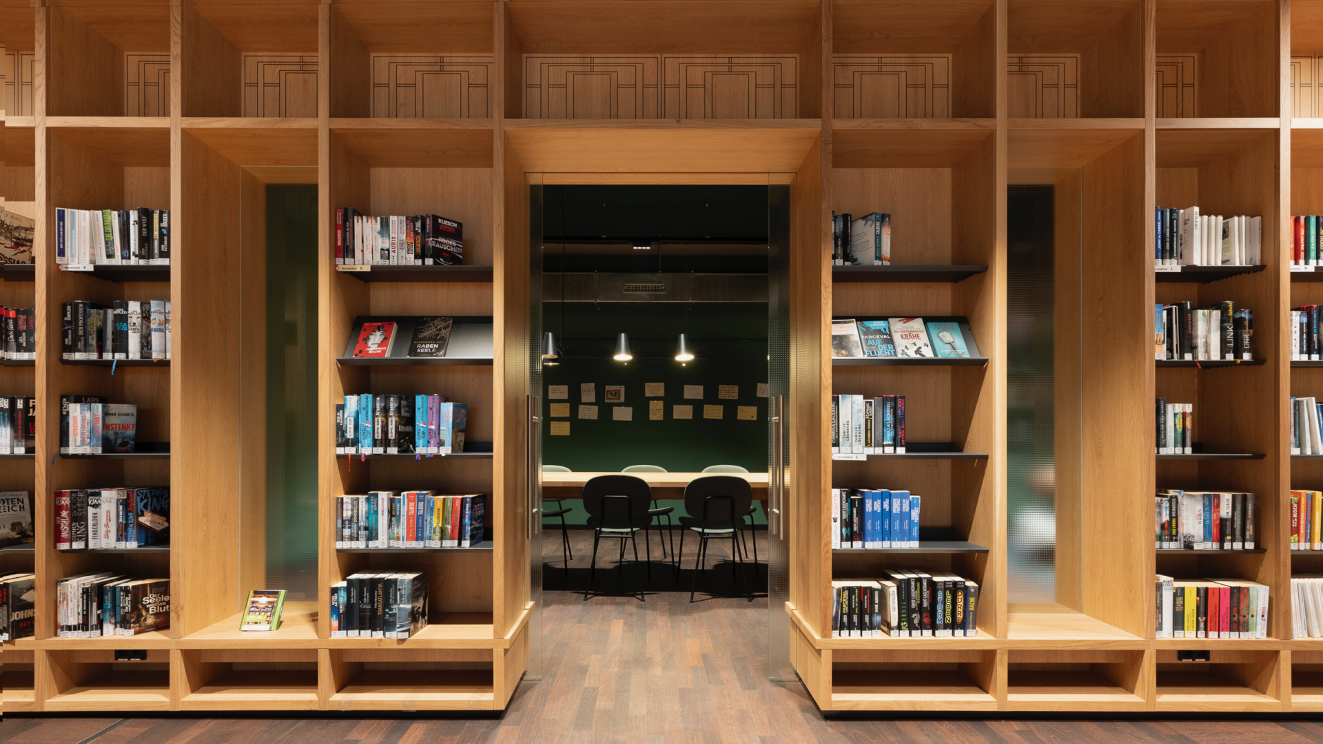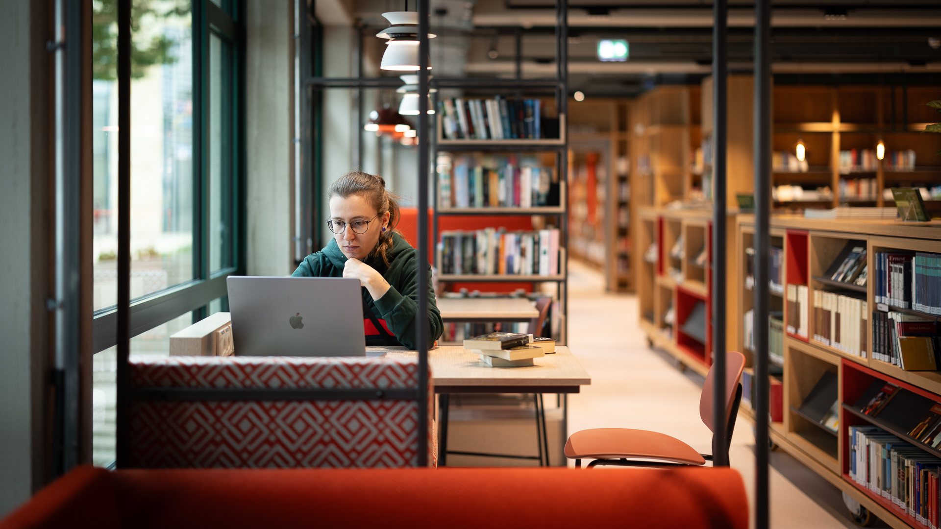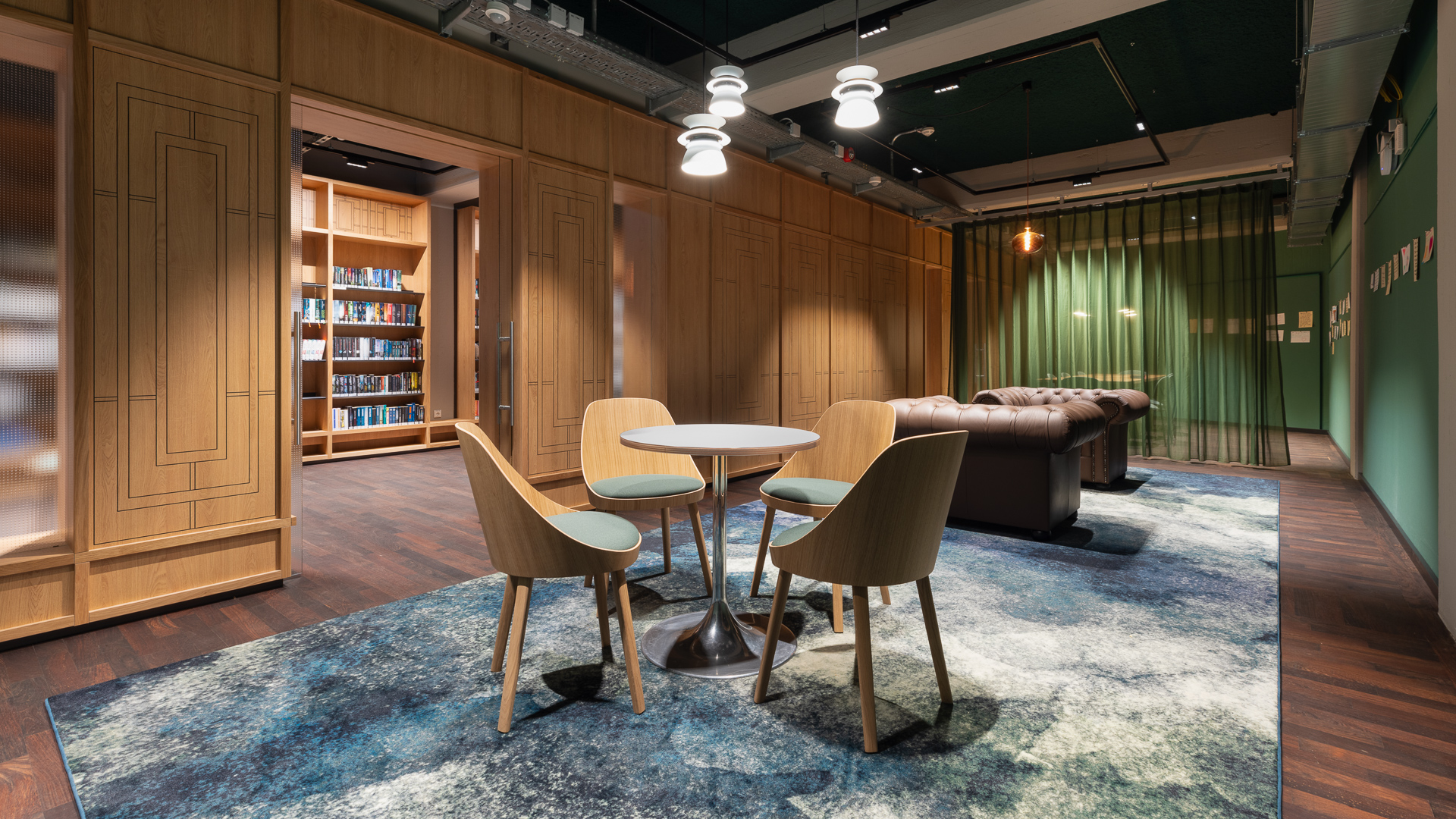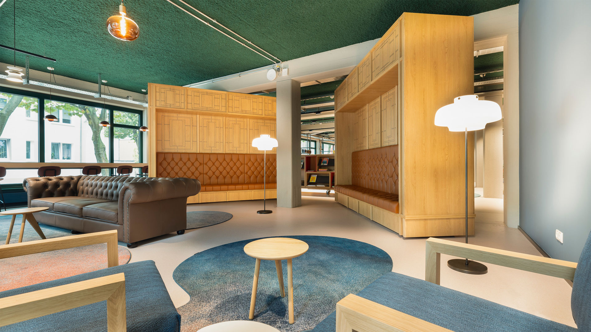 includi’s interior design closely matches the building’s original architecture and identity from the 1980s. This nostalgic ambiance is also recognizable in the mix of distinct furniture and decorative lighting with modernist design classics. Despite its large size, visitors will not easily feel lost in Library Velbert. By playing with strong colors, materials and floor coverings, different zones have been created, each with its own atmosphere.