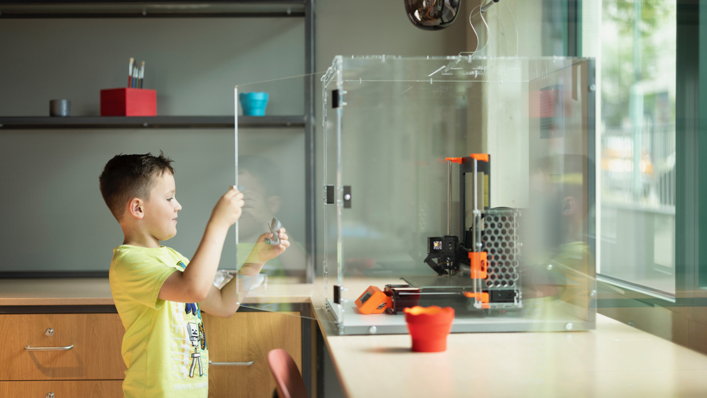 The library in the Forum also offers numerous places to stay and sit. You can spend time together with others or withdraw a little more, for example into the cozy room or the family room. Visitors are taken on a journey of discovery through different worlds at Velbert Library. For all ages, there is always something to read, learn, explore and certainly something to experience! The library includes a “James Bond door” – a rotating bookcase – a MakerSpace and learning studios.