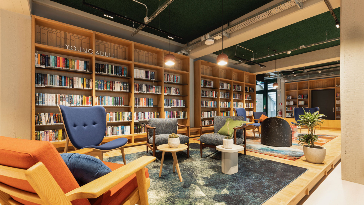 How do you transform a library of some 40 years of age into a modern third place? By, among other things, doing solid research and setting the required design conditions. In the German town of Velbert, this led to a bold interior design with a touch of 1980s aesthetics. These original design specials make visiting this library an unexpected experience.